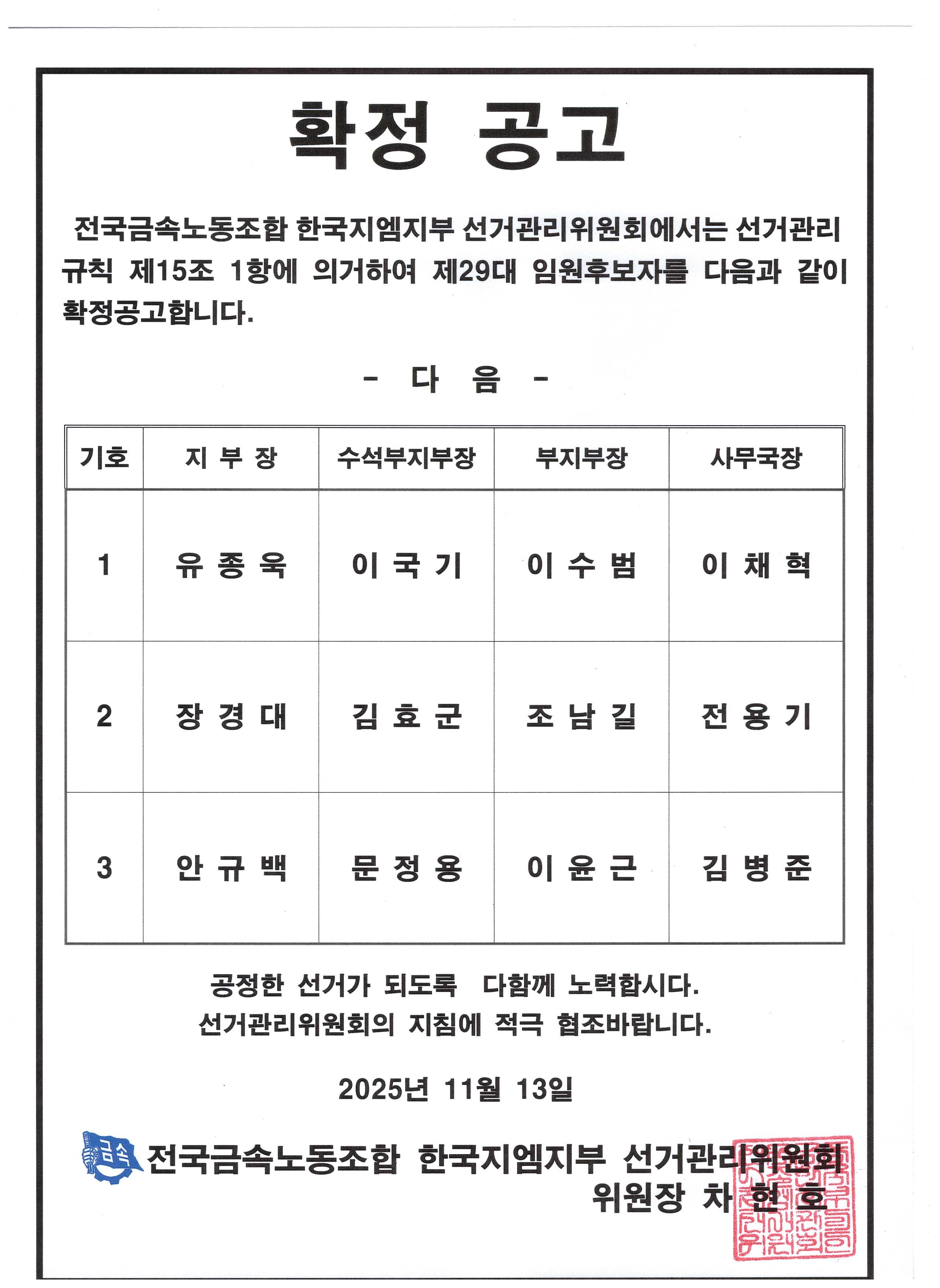 Àü±¹±Ý¼Ó³ëµ¿Á¶ÇÕ Á¦14±â ÀÓ¿ø¼±°Å °ø°í