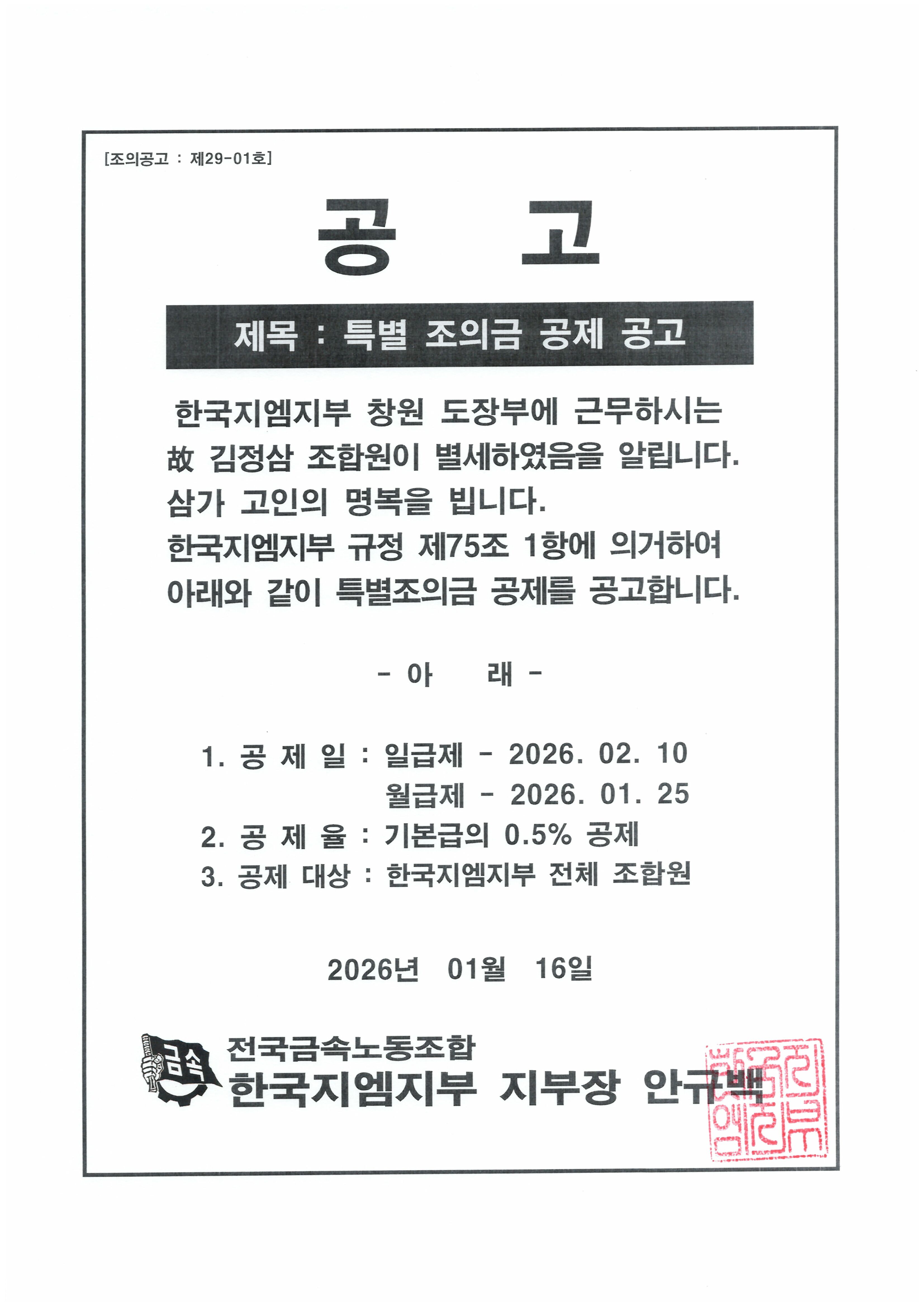 Ưº° Á¶ÀÇ±Ý °øÁ¦ °ø°í
