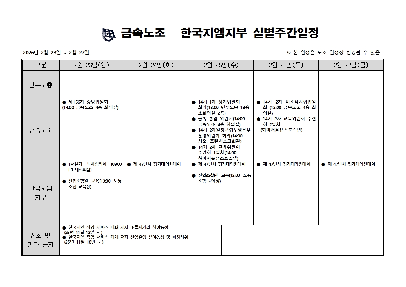2026³â 2¿ù 23ÀÏ ~ 2¿ù 27ÀÏ ÁÖ°£ÀÏÁ¤Ç¥ ÀÔ´Ï´Ù