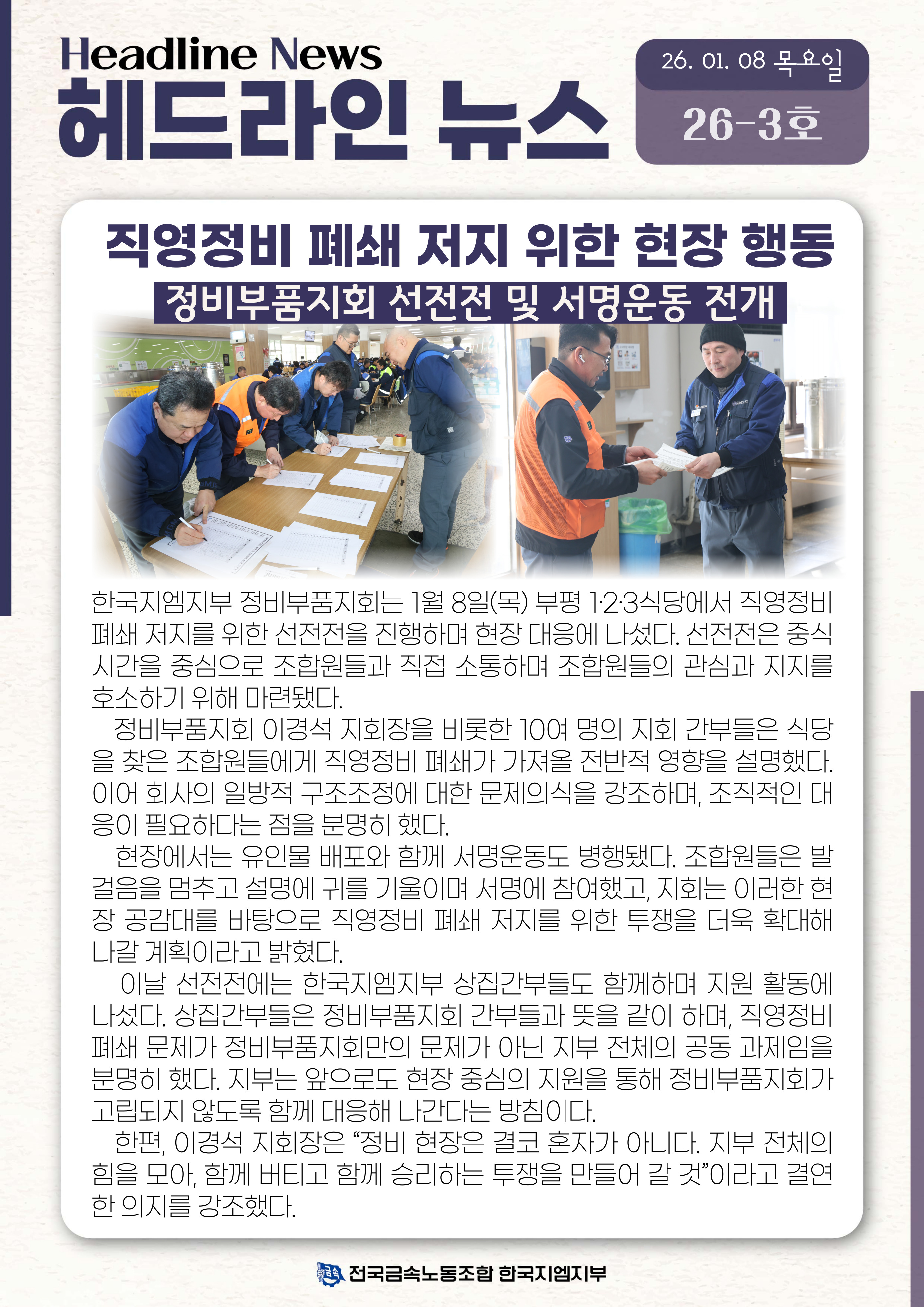 Á÷¿µÁ¤ºñ Æó¼â ÀúÁö À§ÇÑ ÇöÀå Çൿ