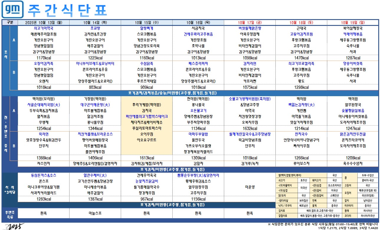 2025³â 10¿ù 13ÀÏ ~ 10¿ù 19ÀÏ ÁÖ°£½Ä´ÜÇ¥ÀÔ´Ï´Ù