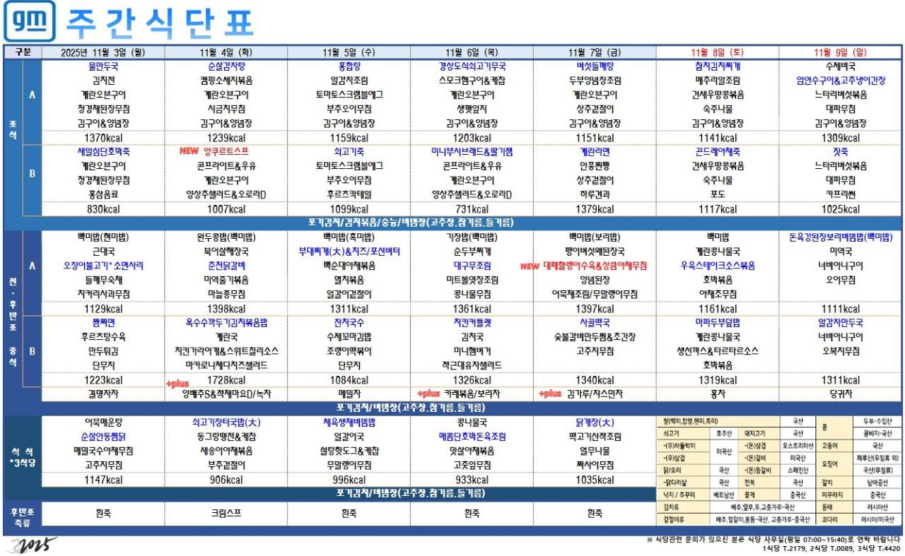2025³â 11¿ù 03ÀÏ ~ 11¿ù 09ÀÏ ÁÖ°£½Ä´ÜÇ¥ÀÔ´Ï´Ù
