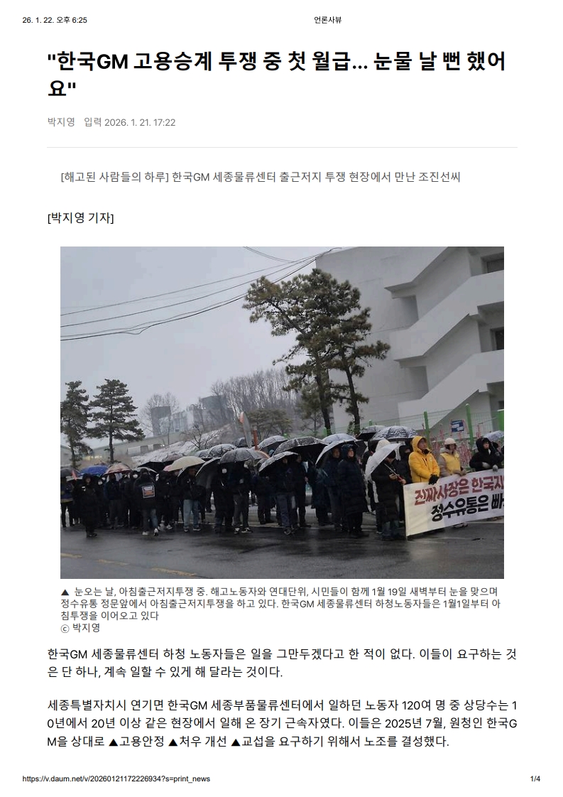 "Çѱ¹GM °í¿ë½Â°è ÅõÀï Áß Ã¹ ¿ù±Þ... ´«¹° ³¯ »· Çß¾î¿ä"