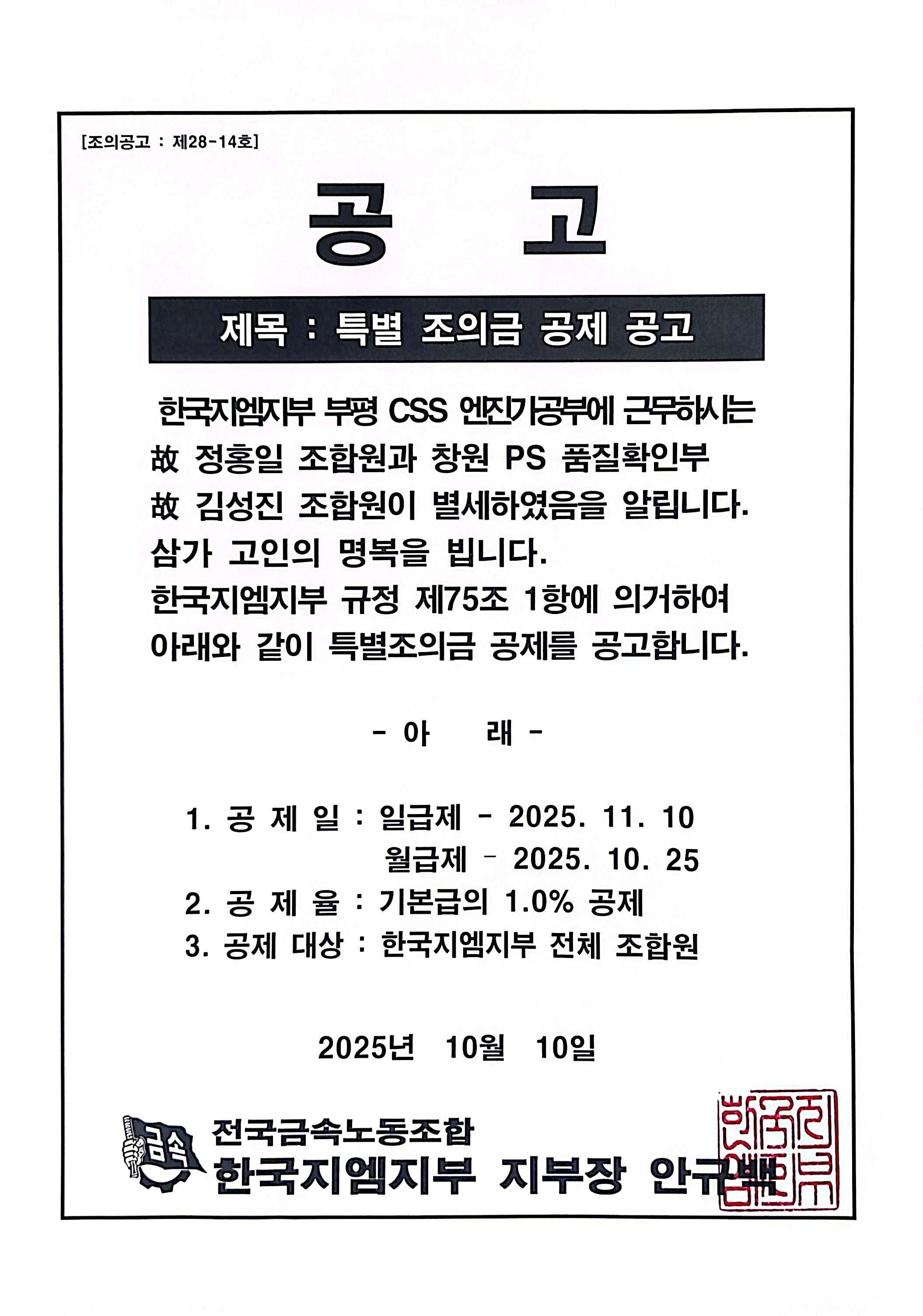 Ưº° Á¶ÀÇ±Ý °øÁ¦ °ø°í