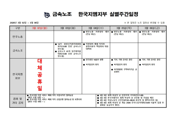2026³â 3¿ù 2ÀÏ ~ 3¿ù 6ÀÏ ÁÖ°£ÀÏÁ¤Ç¥ ÀÔ´Ï´Ù