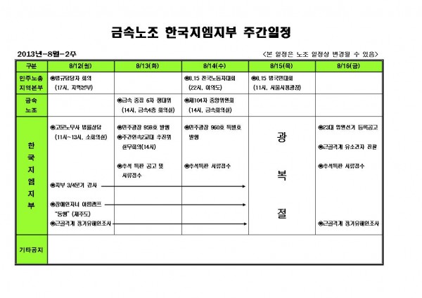 [±³À°¼±Àü½Ç] ÁÖ°£ÀÏÁ¤ 8¿ù 2ÁÖÂ÷