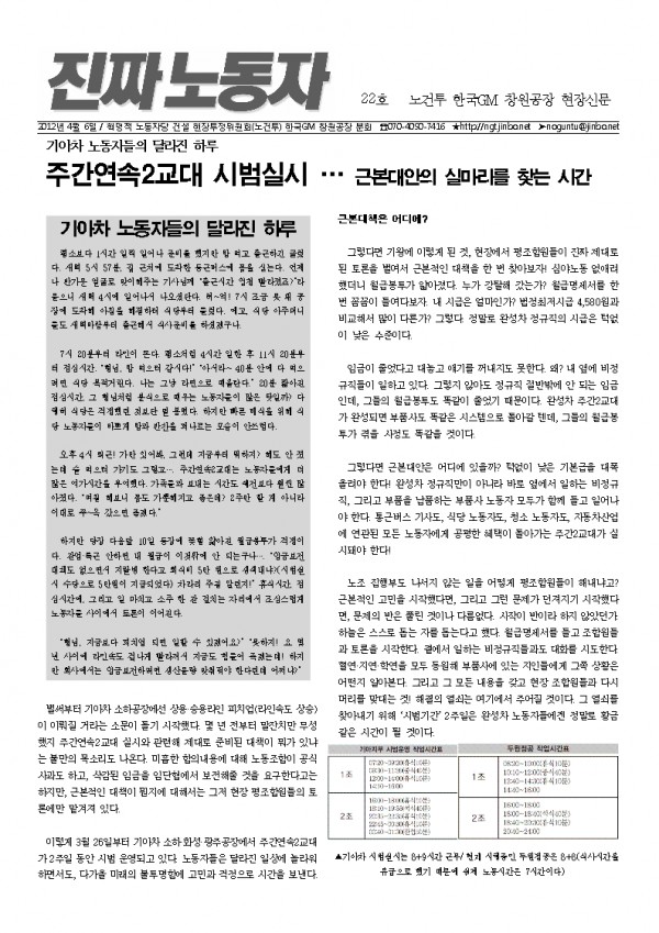 ÁÖ°£¿¬¼Ó2±³´ë : ±â¾ÆÂ÷ ³ëµ¿ÀÚµéÀÇ ´Þ¶óÁø ÇÏ·ç
