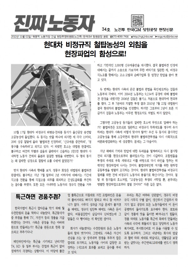 [ÁøÂ¥³ëµ¿ÀÚ34È£] Çö´ëÂ÷ ºñÁ¤±ÔÁ÷ öž³ó¼ºÀÇ ¿ÜħÀ» ÇöÀåÆÄ¾÷ÀÇ ÇÔ¼ºÀ¸·Î!