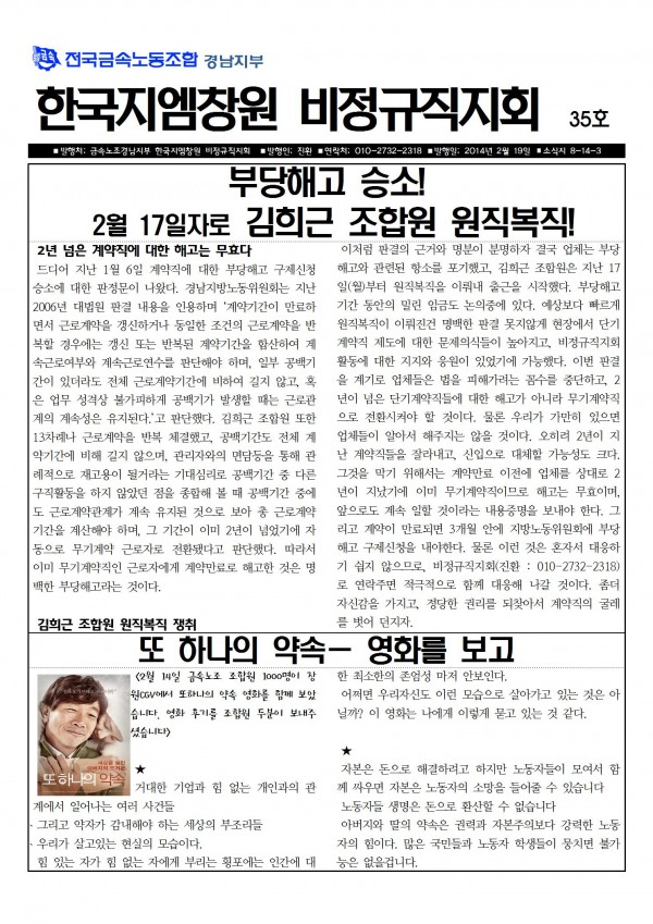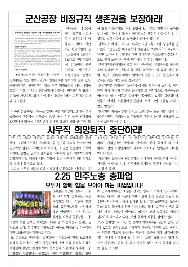 ºÎ´çÇØ°í ½Â¼Ò! 2¿ù 17ÀÏÀÚ·Î ±èÈñ±Ù Á¶ÇÕ¿ø ¿øÁ÷º¹Á÷!//±º»ê°øÀå ºñÁ¤±ÔÁ÷ »ýÁ¸±ÇÀ» º¸ÀåÇ϶ó!