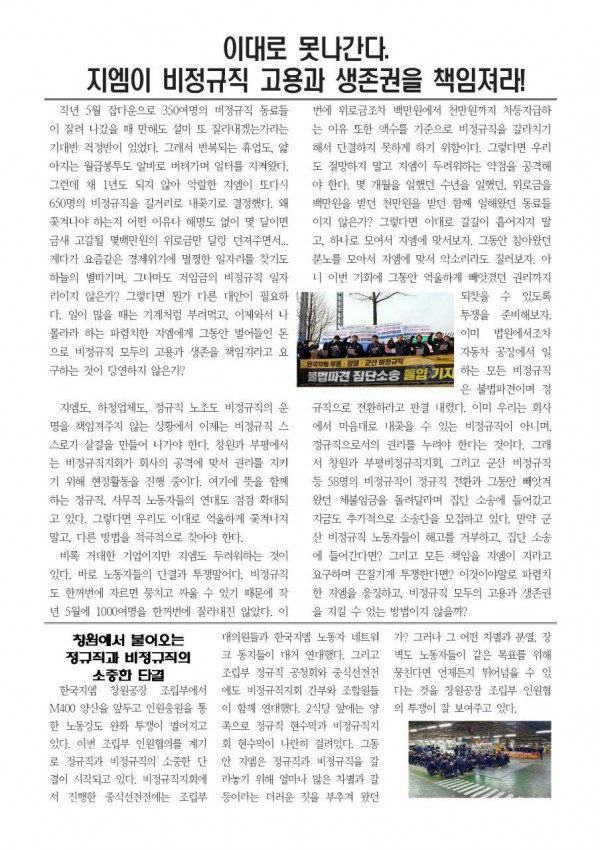 ±º»êƯº¸> ÀÌ´ë·Î ¸ø³ª°£´Ù. Áö¿¥ÀÌ ºñÁ¤±ÔÁ÷ °í¿ë°ú »ýÁ¸±ÇÀ» Ã¥ÀÓÁ®¶ó