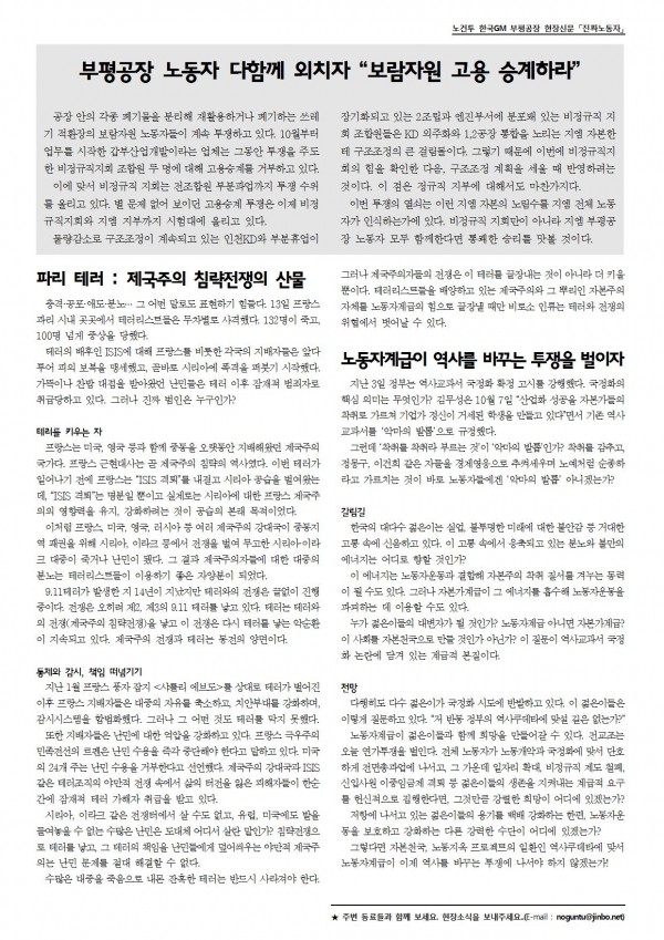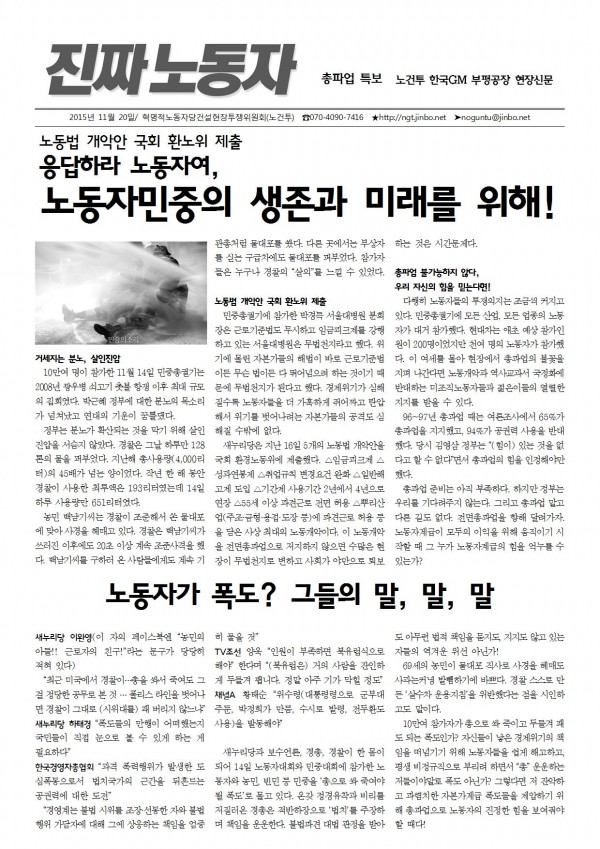 ³ëµ¿ÀÚ°è±ÞÀÌ ÀþÀºÀ̵é°ú ÇÔ²² Èñ¸ÁÀ» ¸¸µé¾î°¥ ¼ö ÀÖ´Ù. Àü±³Á¶´Â ¿À´Ã ¿¬°¡ÅõÀïÀ» ¹úÀδÙ. Àüü ³ëµ¿ÀÚ°¡ ³ëµ¿°³¾Ç°ú ±¹Á¤È¿¡ ¸Â¼ ´ÜÈ£ÇÏ°Ô Àü¸éÃÑÆÄ¾÷¿¡ ³ª¼°í, ±× °¡¿îµ¥ ÀÏÀÚ¸® È®´ë, ºñÁ¤±ÔÁ÷ Á¦µµ öÆó, ½ÅÀÔ»ç¿ø ÀÌÁßÀÓ±ÝÁ¦ °ÝÅð µî ÀþÀºÀ̵éÀÇ »ýÁ¸À» ÁöÄѳ»´Â °è±ÞÀû ¿ä±¸¸¦ Çå½ÅÀûÀ¸·Î ÁýÇàÇÑ´Ù¸é, ±×°Í¸¸Å °·ÄÇÑ Èñ¸ÁÀÌ ¾îµð¿¡ Àְڴ°¡?
