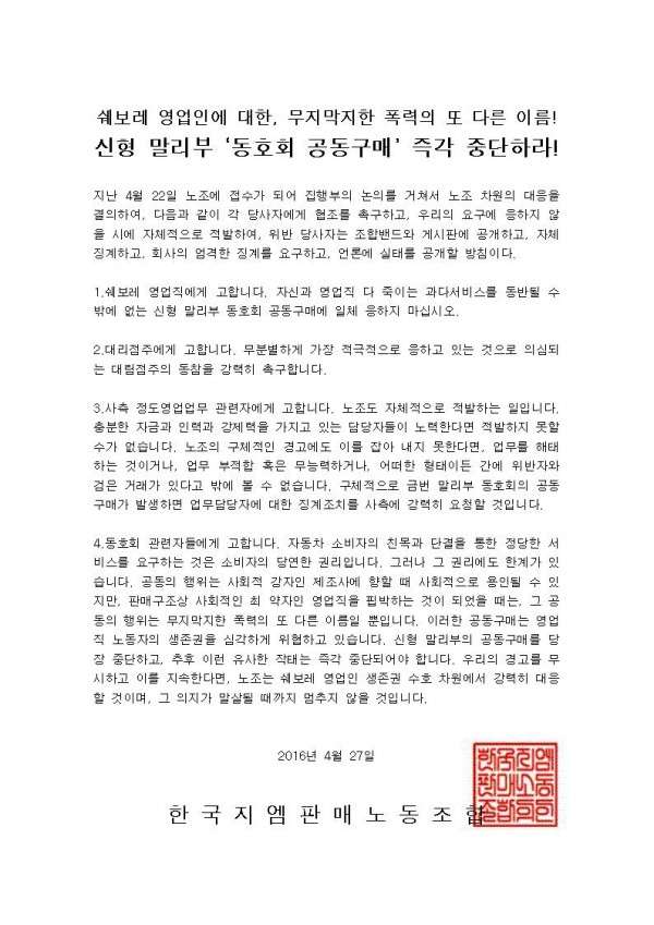 Çѱ¹Áö¿¥ ³ëÁ¶, Á÷¿µ¼ºñ½º¼¾ÅÍ¿¡¼ ¹«»óÁ¡°Ë Á¦°ø¡¦"Ç×ÀÇÇൿ ÇÔ²²ÇØ´Þ¶ó"